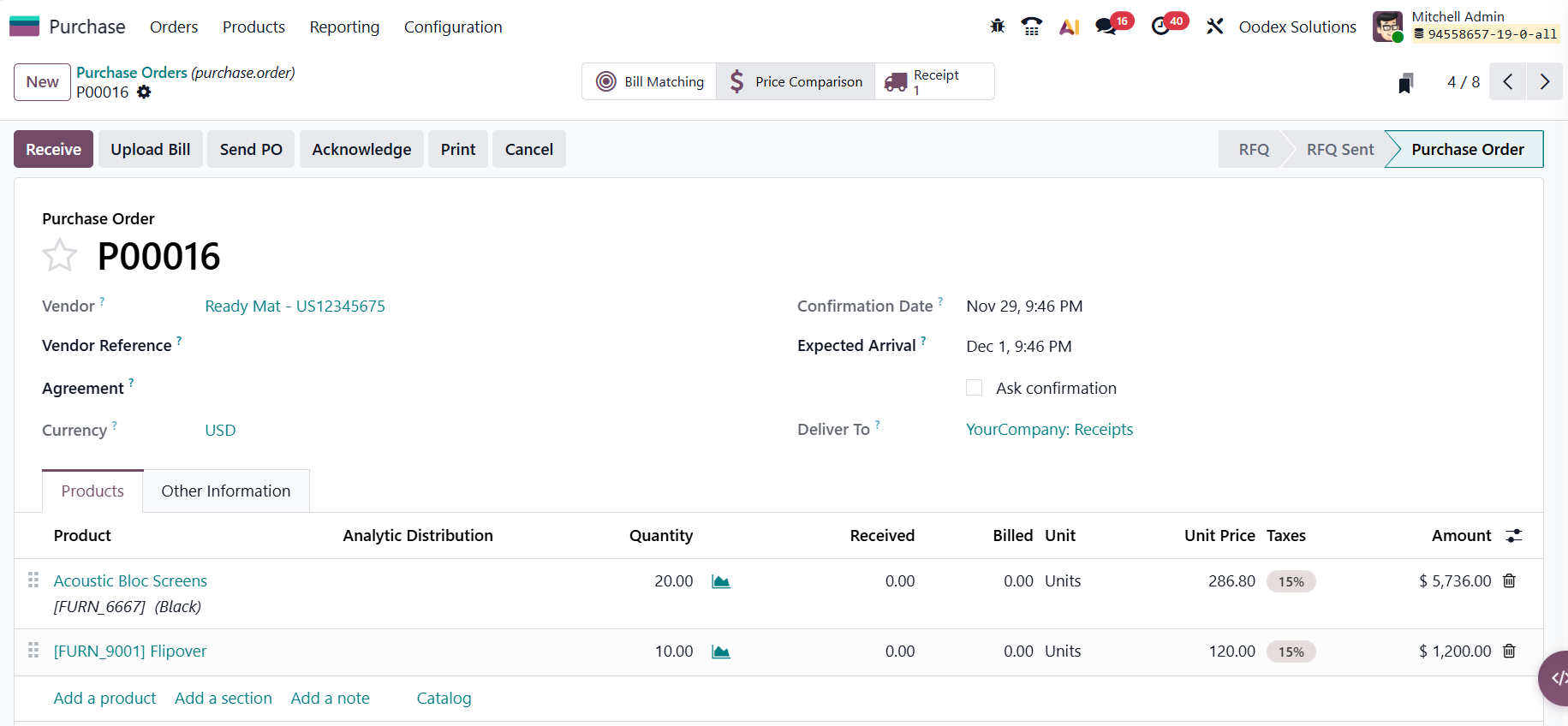- Inventory Integration: Automatic updates of received quantities in stock.